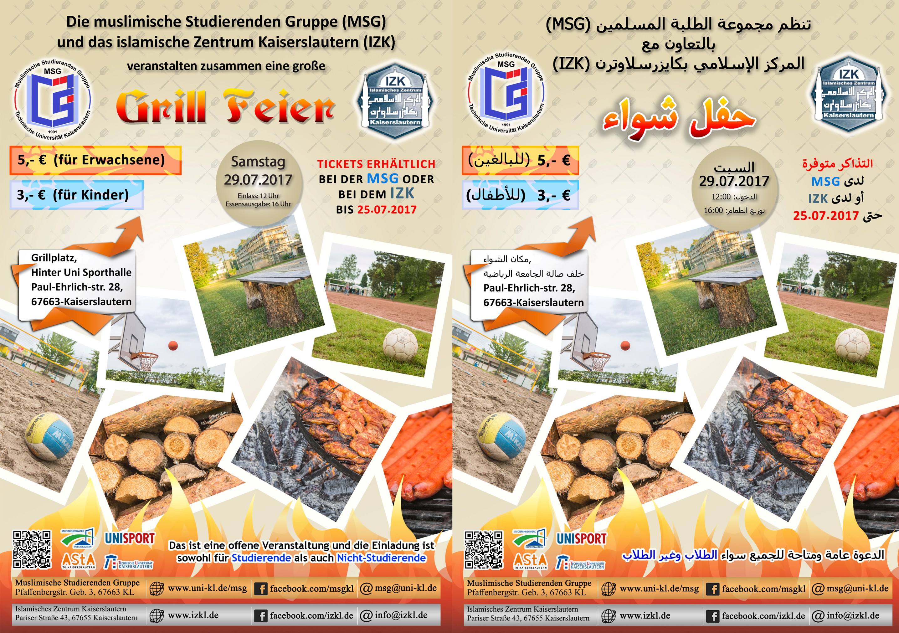 تنظم مجموعة الطلبة المسلمين بالتعاون مع المركز الإسلامي بكايزرسلاوترن وتدعوكم لحضور حفل شواء يوم 29.07.2017.