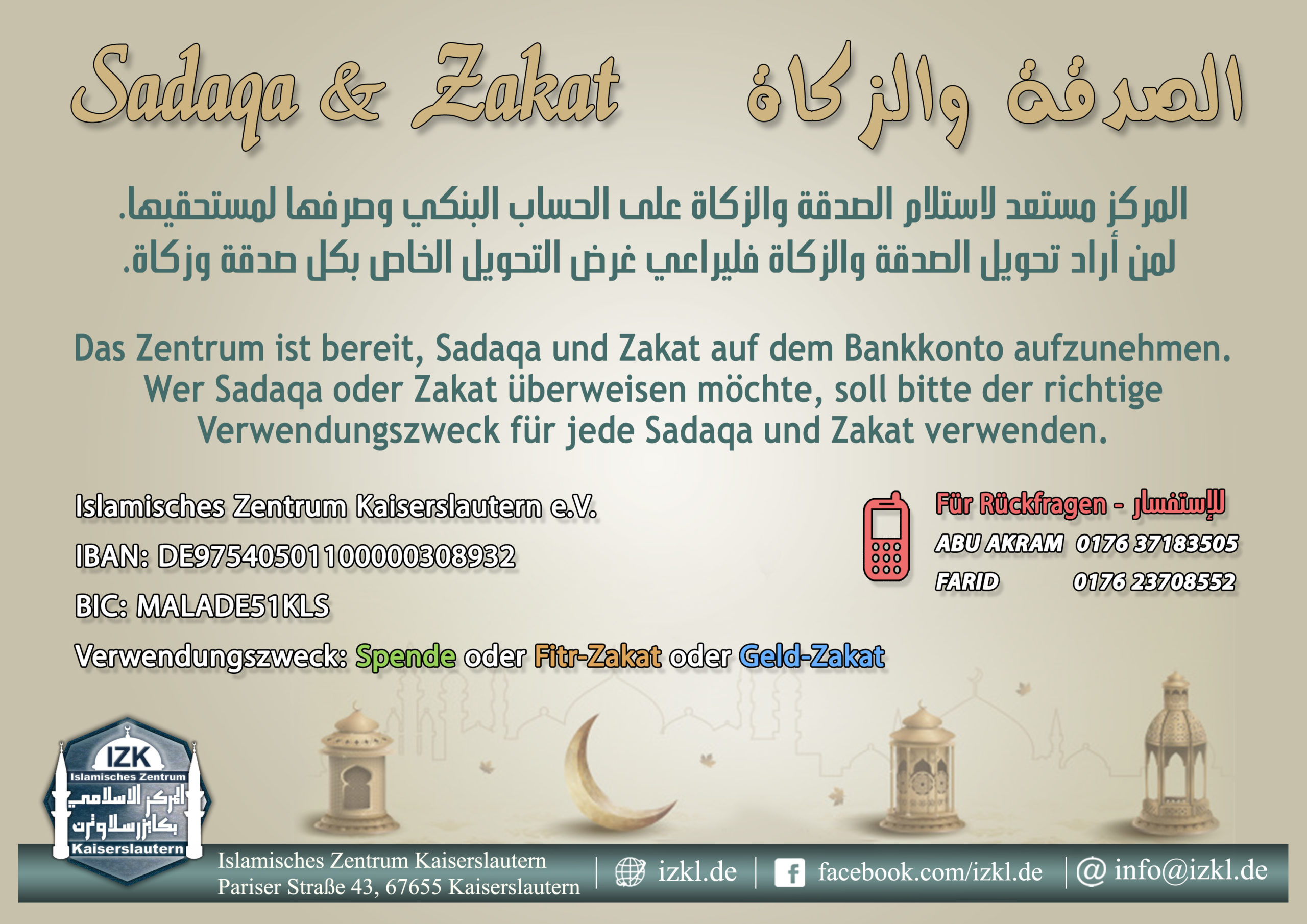 Verwendungszweck: Spende oder Fitr-Zakat oder Geld-Zakat